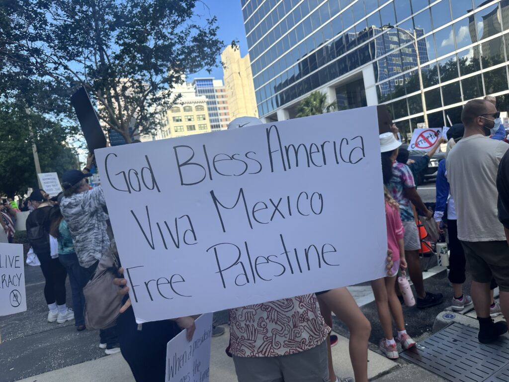 “We were standing next to Mexican Americans… we had somebody next to us who had a pro-Palestine flag. And of course, lots of LGBTQIA signs as well,” Smith said. “But for me, it kind of goes across all the political things that are going on in the world right now.”
