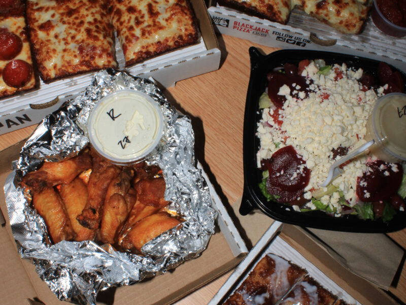 The Crow’s Nest staffers review Blackjack Pizza; the newest offering from Bay Features inside the University Student Center. Photo by Matthew McGovern By Irena Mesa and Matthew McGovern Bay Features,