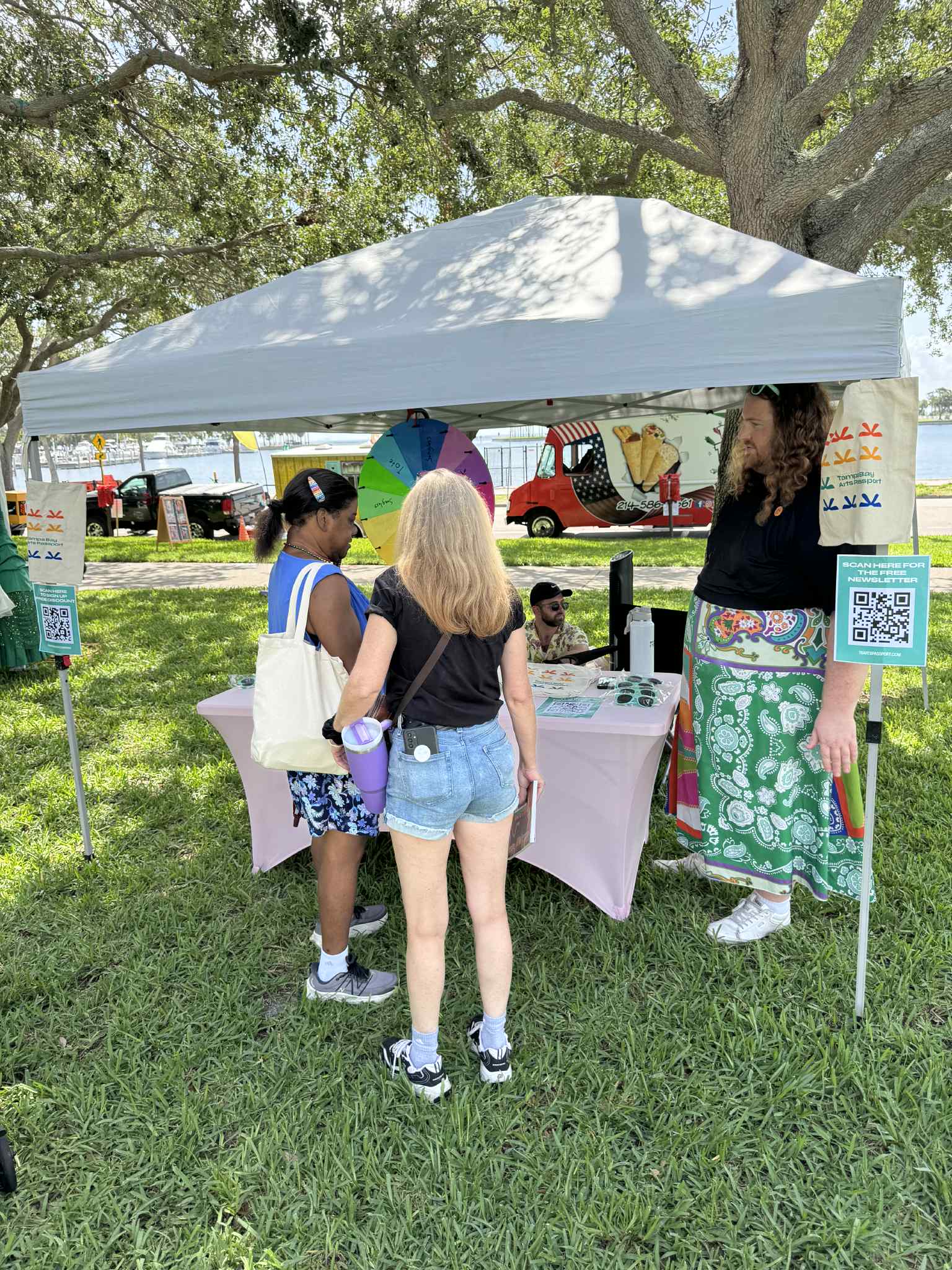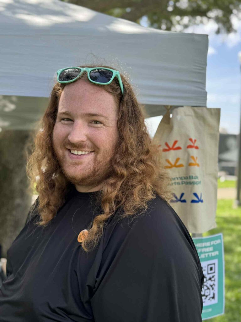 Anderson (right) tabling a booth for the Tampa Bay Arts Passport at a Pride event.