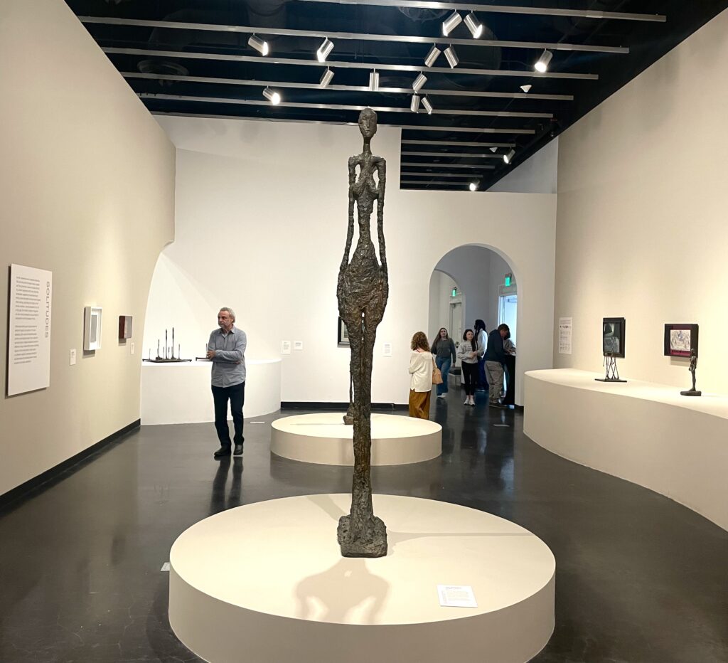One of Giacometti’s nearly eight- foot- tall, decomposing and deeply imperfect human forms towered over the center of the gallery. Eerie and foreboding, but equally intriguing.