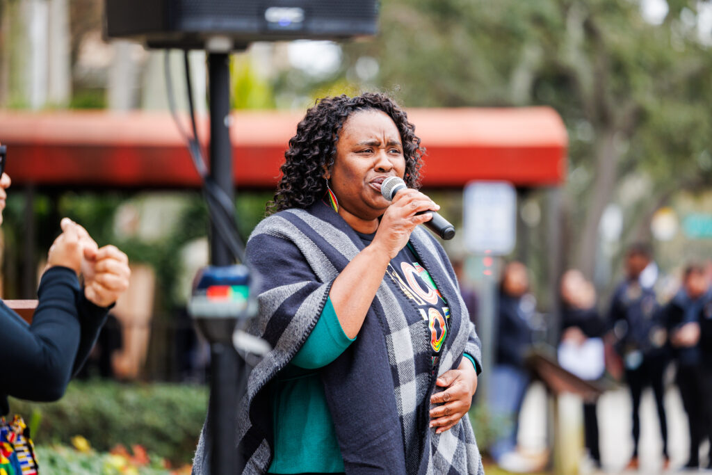 When I say Black history,” Woodson African American Museum of Florida office manager Vanessa Sweat prompted the bundled-up crowd gathered around St. Petersburg’s City Hall on a chilly Thursday morning. “You say American history.”