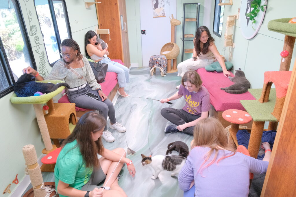 Students flocked to Harborlawn on Feb. 18 to pet cats at the HAB campus cat cafe.