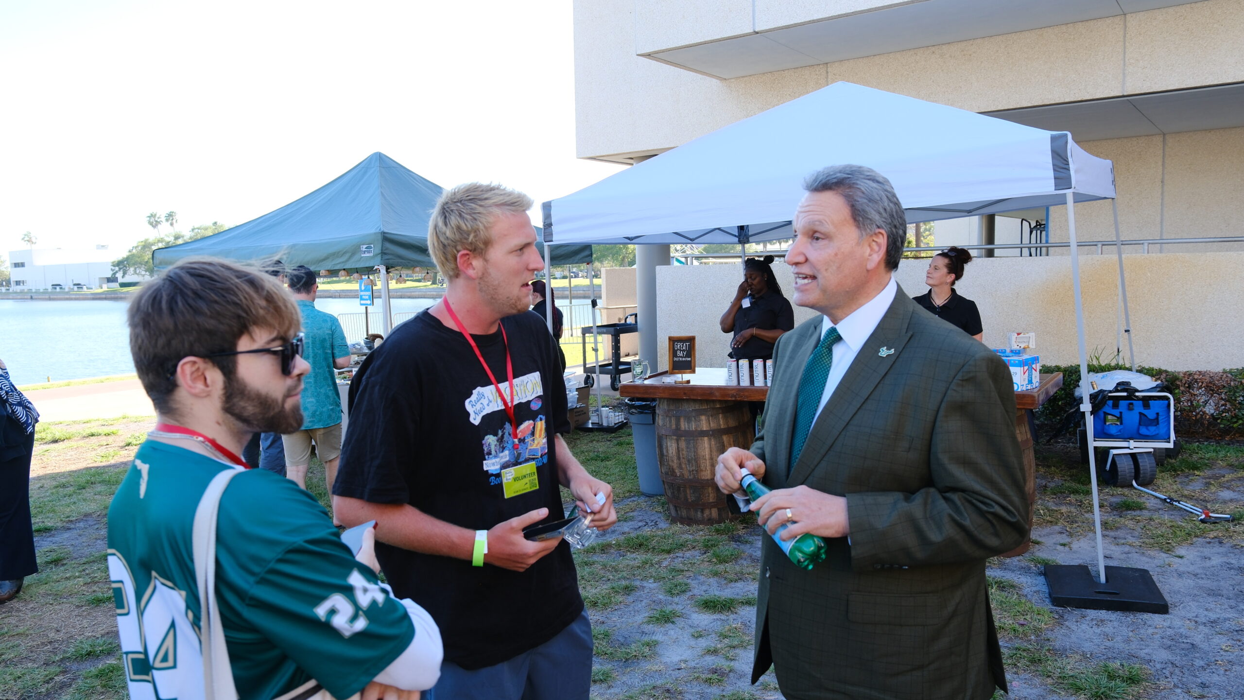Brews and eats set a jovial tone on the USF St. Petersburg campus as President Moez Limayem addressed students and alumni at the Bulls and Brews by the Bay event on April 17.